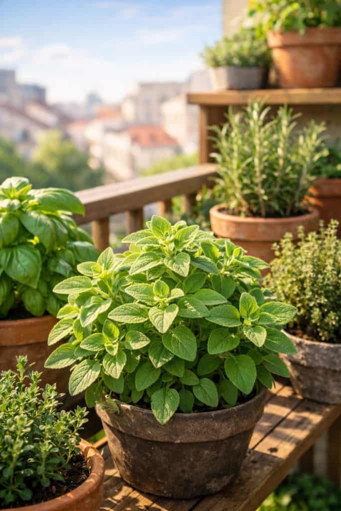 Oregano brings that real Italian flavor to your balcony garden. It grows easily in pots and doesn’t need much fuss.