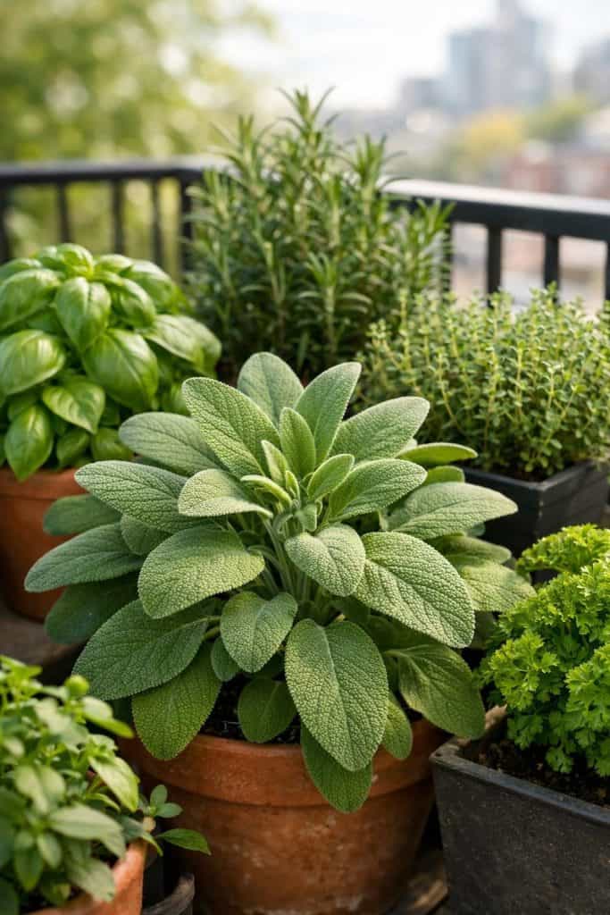 You can grow sage in containers on your balcony, and honestly, fresh sage is miles better than anything dried.