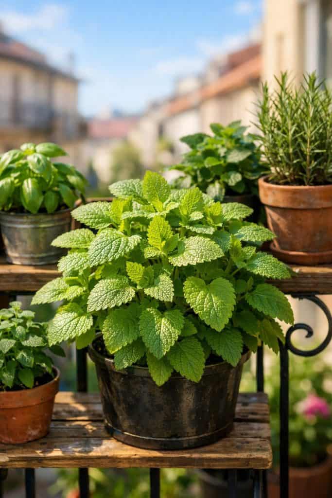Lemon balm grows super easily in containers, and before you know it, your balcony smells like fresh citrus. I love that about it.