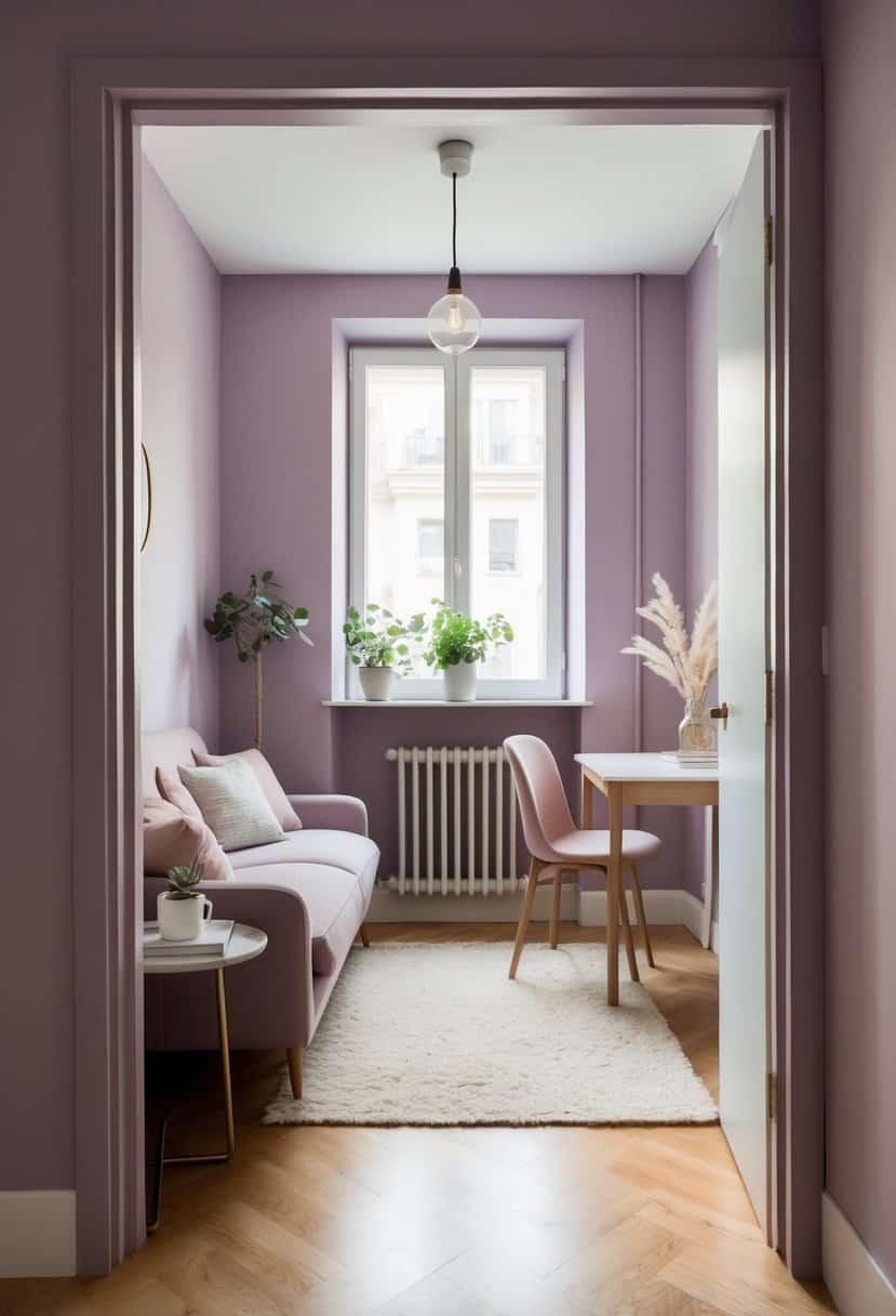 Pale lavender reflects light well, helping to brighten up tight spaces. You can pair it with white trim for a clean, fresh look.
