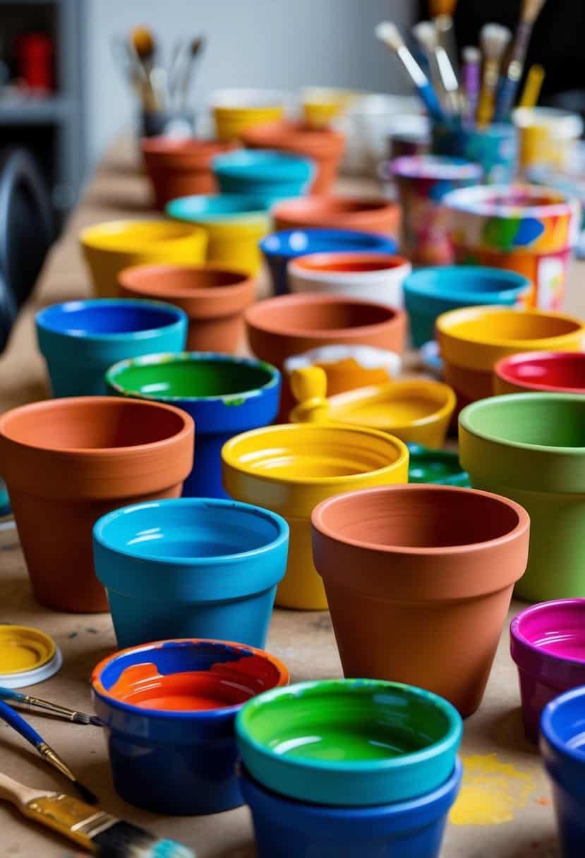 Start by cleaning your pots with a damp cloth. Then, grab some acrylic or chalk paint in your favorite colors. Hold the pot from the inside and paint it from side to side for best results.