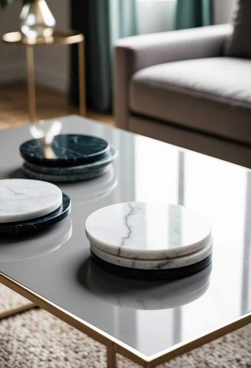 Choose coasters that match your table’s color scheme. White marble coasters look great on dark tables, while black or gray marble complements lighter surfaces.