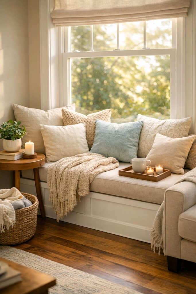 A window seat gives you a cozy nook for reading or sipping coffee. Pile on soft cushions and a few throw pillows to make it extra inviting.
