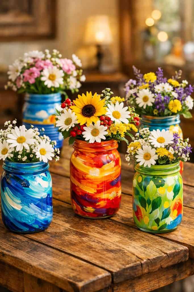11. Hand-painted Mason Jar Vases