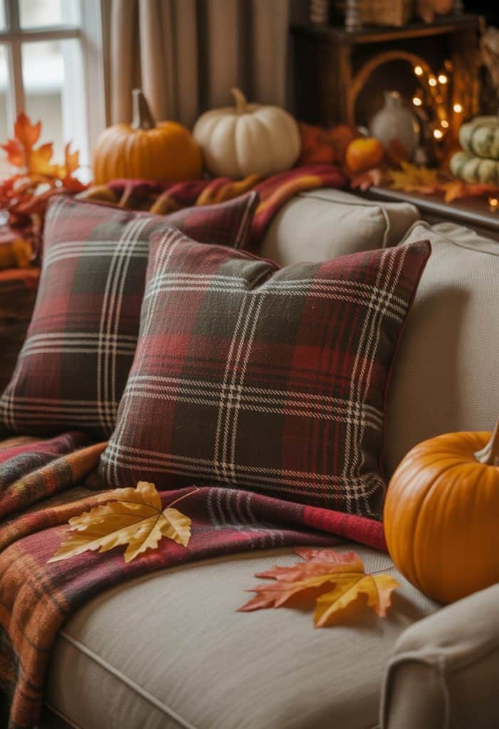 Plaid pillows in deep reds and browns instantly warm up any space. Those classic patterns just feel right this time of year.