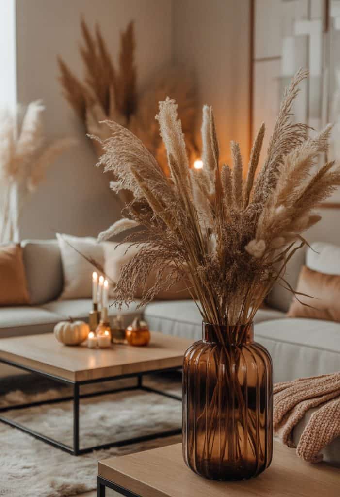 Drop some dried wheat stalks or pampas grass into a tall vase. These natural elements bring a rustic, elegant vibe.