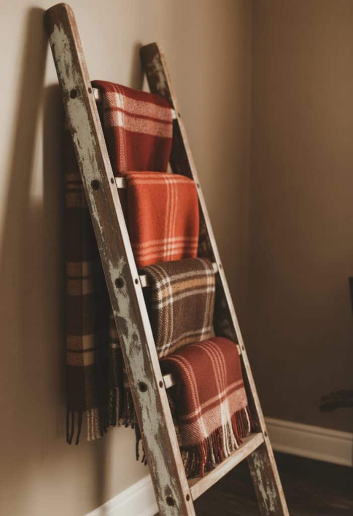 Hang plaid blankets on the rungs. It’s functional and decorative—what’s not to like?