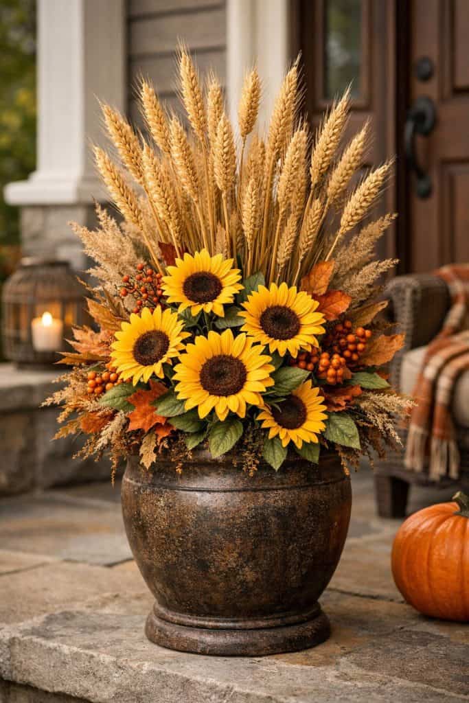 Sunflowers just make everything brighter, don’t they? Pair them with dried wheat stalks for a harvest vibe.
