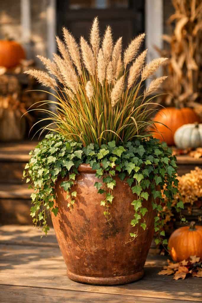 4. Tall Ornamental Grasses with Ivy