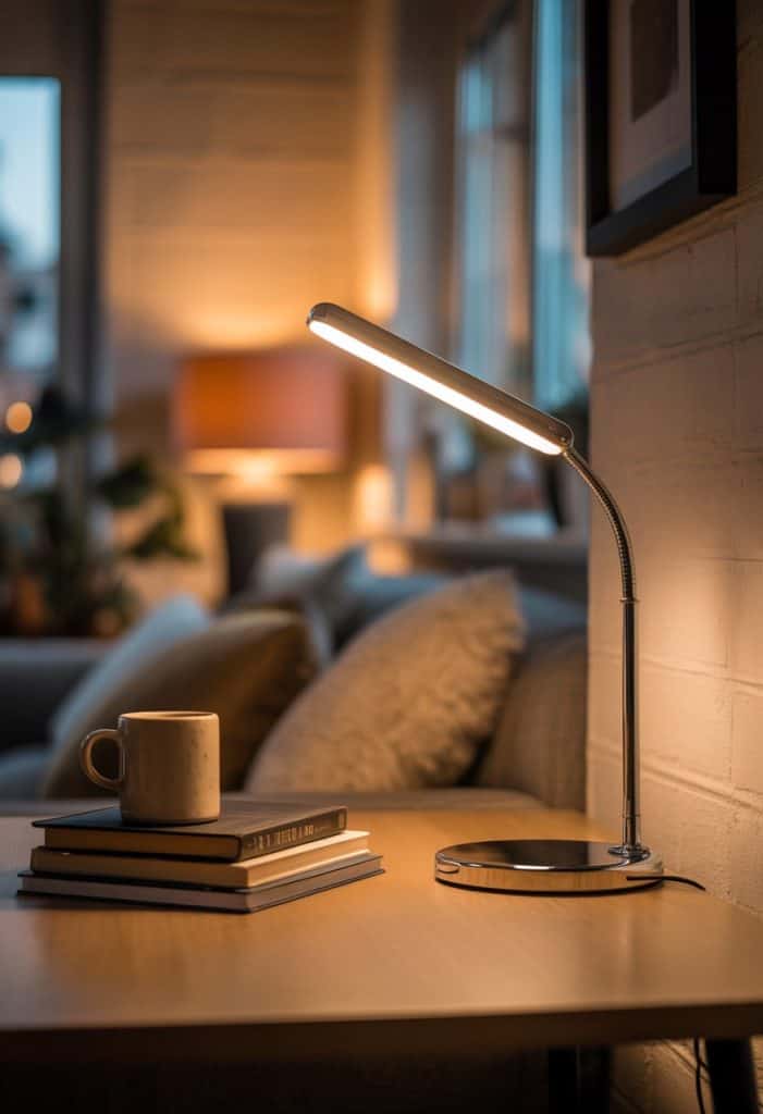 Good lighting is a must for working or studying. An LED desk lamp fits easily and gives off bright, clear light.