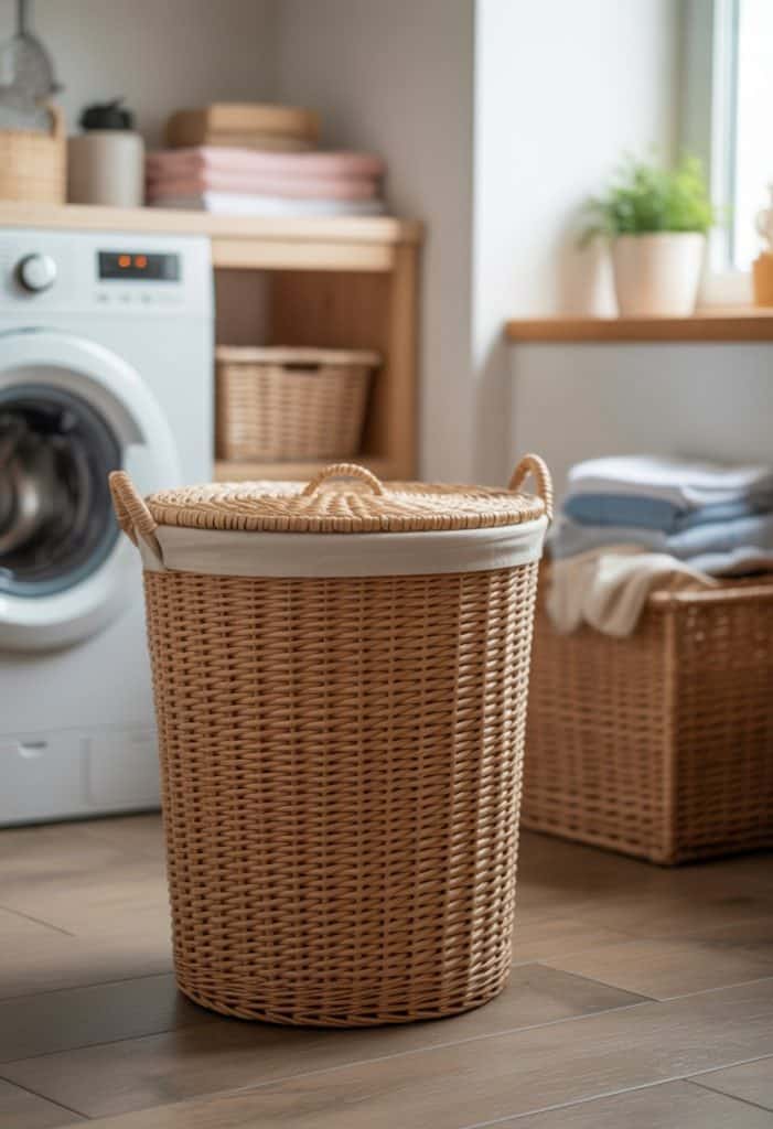 A laundry basket with a lid keeps dirty clothes out of sight. It also helps contain any smells.