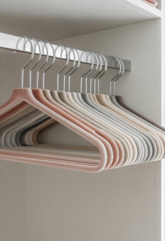 Velvet hangers are a closet upgrade that’s worth it. They’re slimmer than plastic hangers, so you get more space.