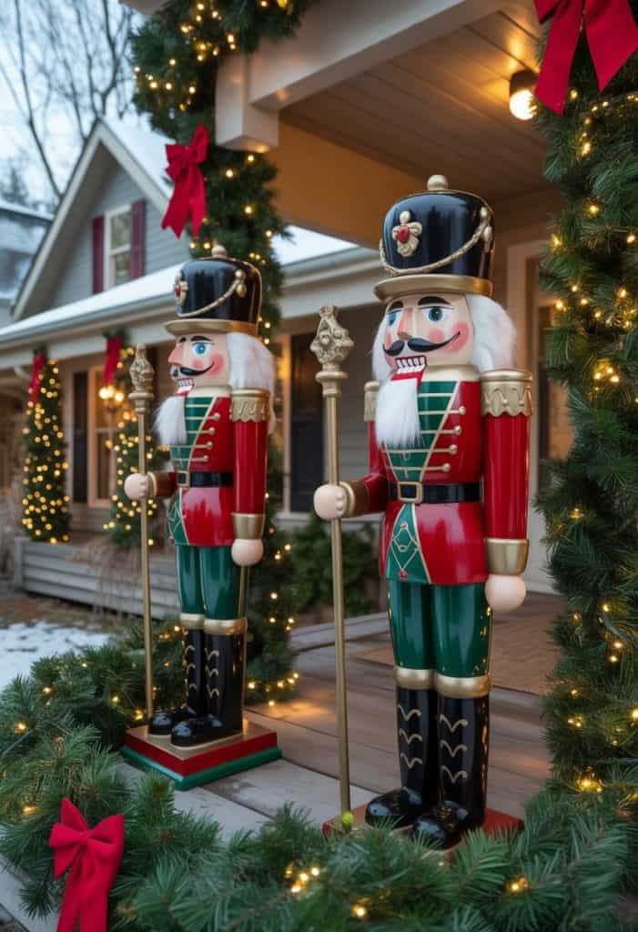 Put matching nutcracker statues on both sides of your front entrance. These traditional guards make a bold, elegant welcome for holiday guests.