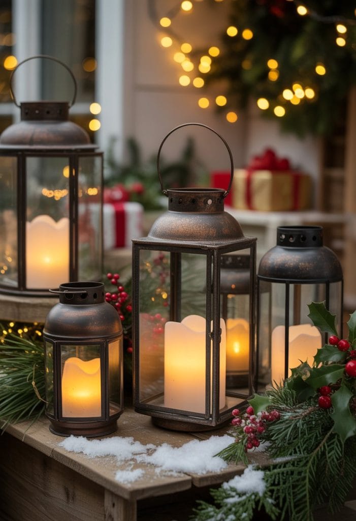 8. Vintage-Style Lanterns with Flickering LED Candles