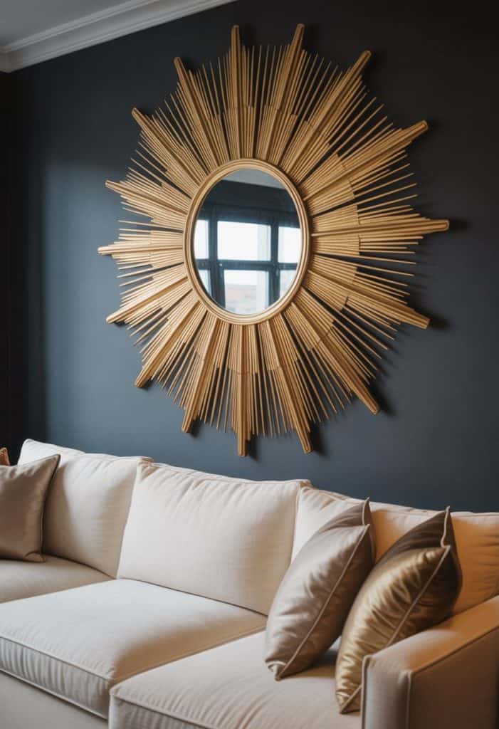 A big sunburst mirror becomes a showstopper on your living room wall. It fills empty space above your sofa or fireplace in a bold way.