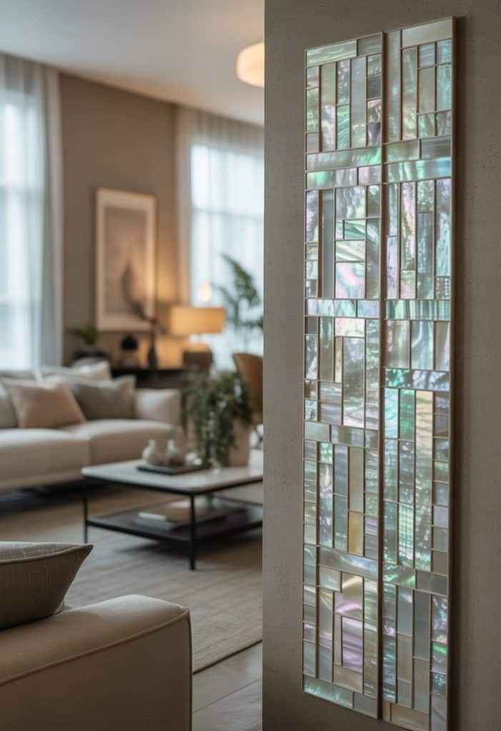 Mother-of-pearl inlay panels add a subtle, elegant shine. These panels use real shell set in marble or wood backgrounds.