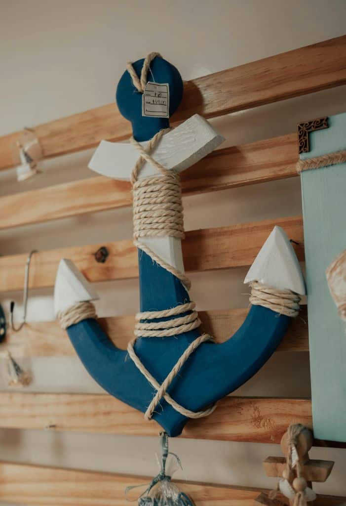Try hanging a metal anchor on your wall for a bold look. Or go for a wooden anchor painted in coastal colors.