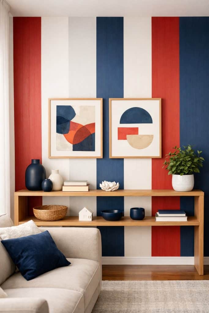 2. Red, White, and Blue Striped Accent Wall