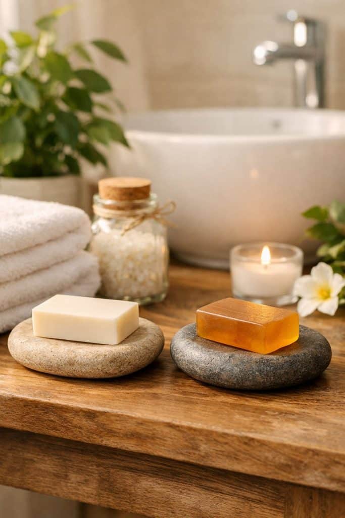 Natural stone soap dishes bring an earthy style to your countertop. They’re beautiful and allow water to drain easily.