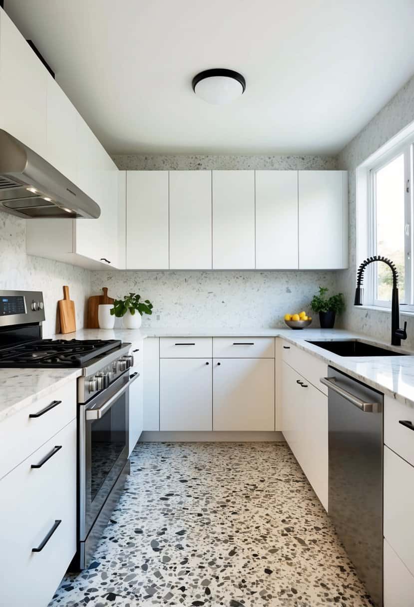 You can choose from many color combinations to match your kitchen’s style. Bold monochrome terrazzo makes a modern statement. Multicolored options bring warmth and personality to your space.